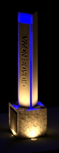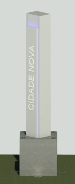 The Obelisk monument, designed by architect and urban planner Alessandre Campos, aims to serve as a visual communication element and a landmark for a neighborhood, city entrance, or community. It is structured in reinforced concrete with a smooth and natural finish, featuring a burnished cement effect.